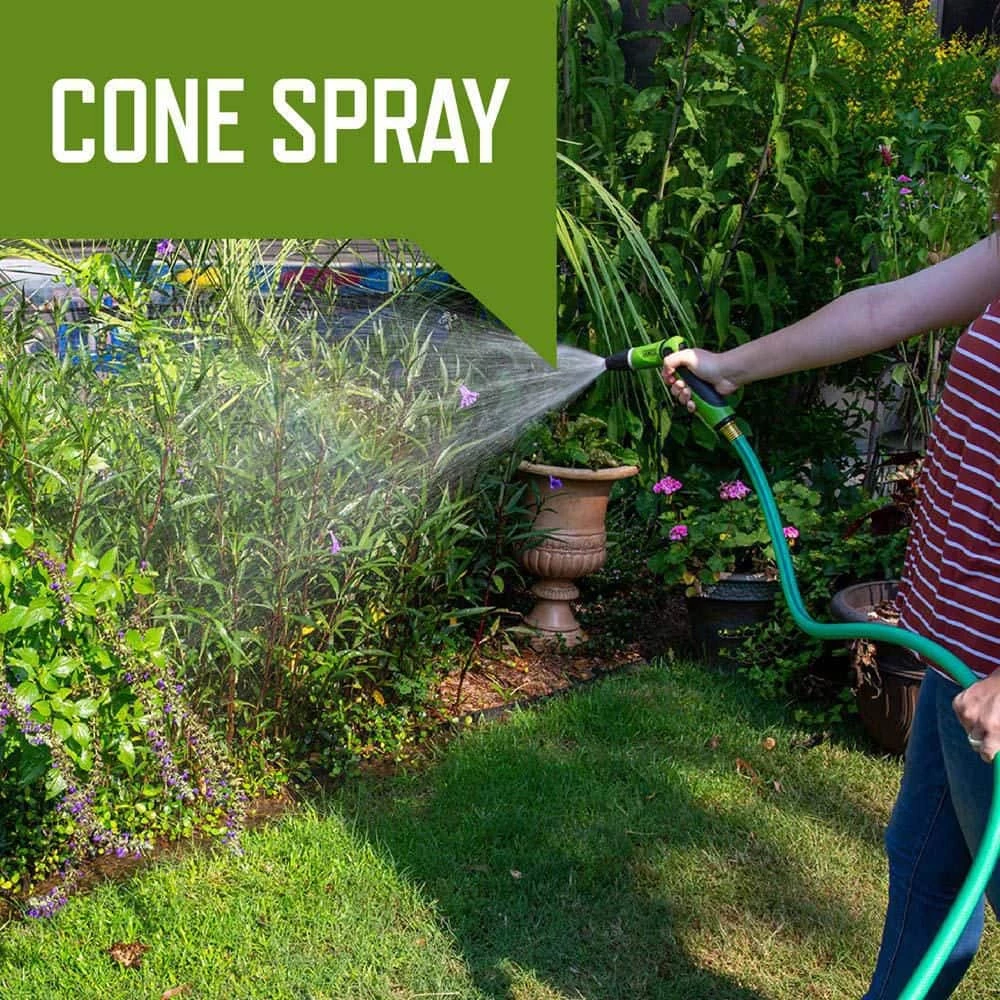 - 7-pattern nozzle sprayer: 7 easy-to-adjust spray patterns with high pressure: shower, flat, center, cone, sprayer, soaker and spray mist, effortlessly spray water with single hand operation by activating rear trigger, use the lock option for continuous spray