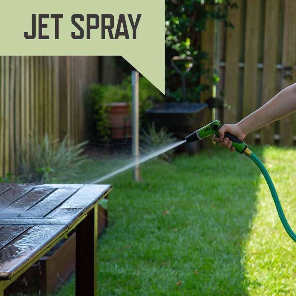 - Jet sprayer: easy to adjust nozzle for mist, cone or jet spray, effortlessly spray water with single hand operation with thumb flow control lever and lock