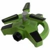 - Includes 2 spike sprinklers and one 3-arm rotating sprinkler