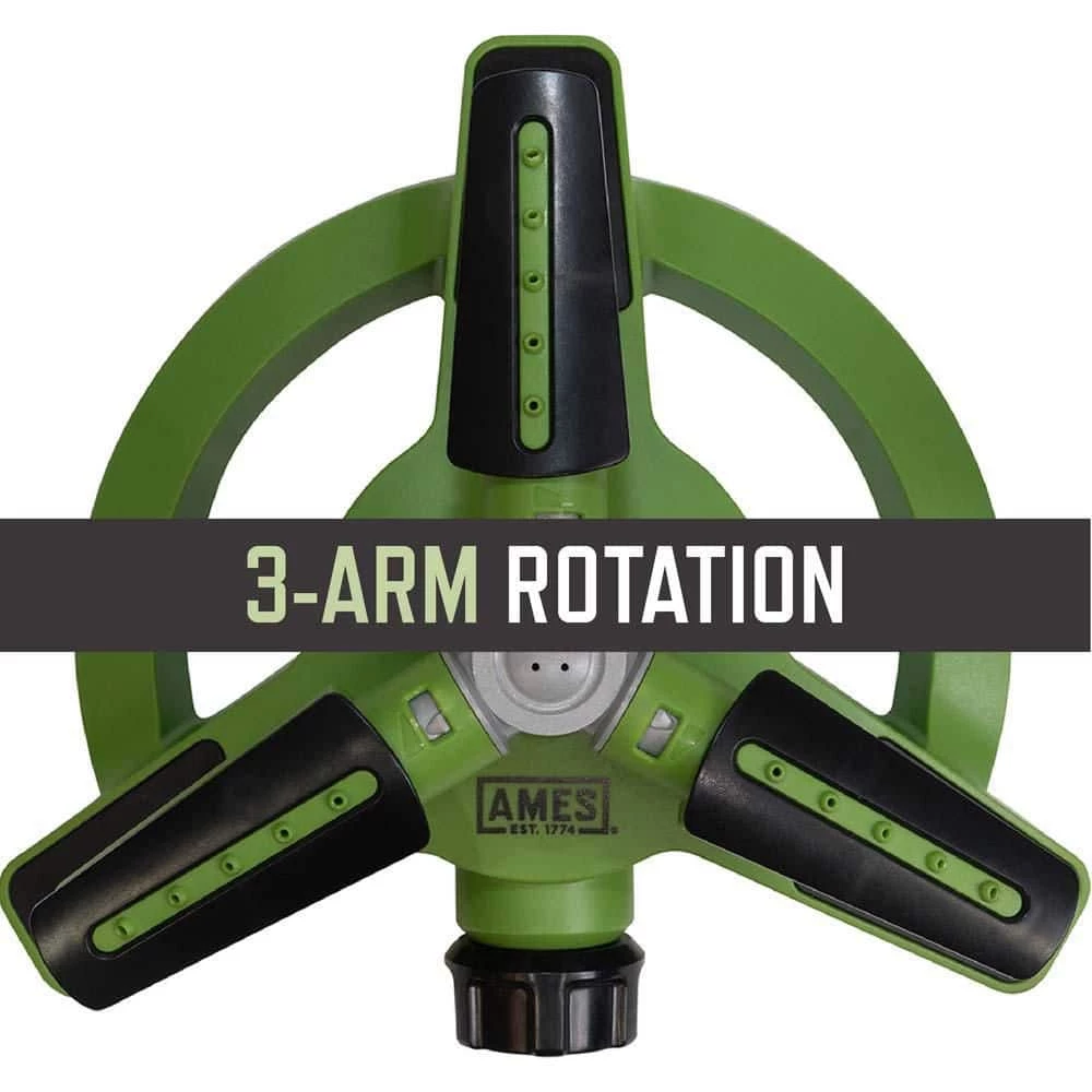 - 3-arm rotating sprinkler: rotating sprinkler provides 360° of rotating and revolving water spray coverage with a maximum spray distance of 18 ft. 3-arms rotate continuously to provide ample water coverage