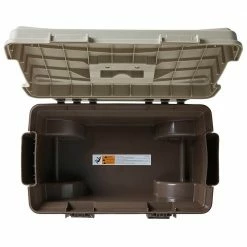 - Snap-close steel lid secures items when not in use and doubles as a sturdy seat