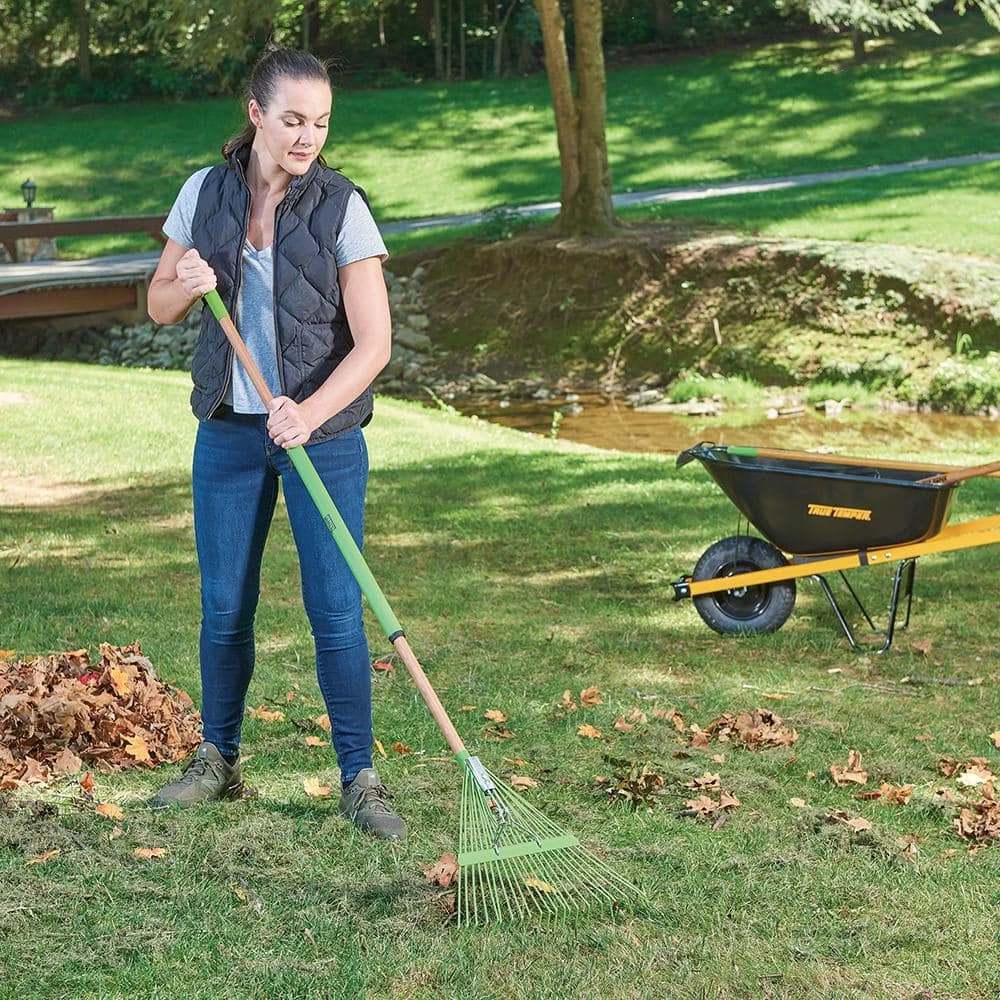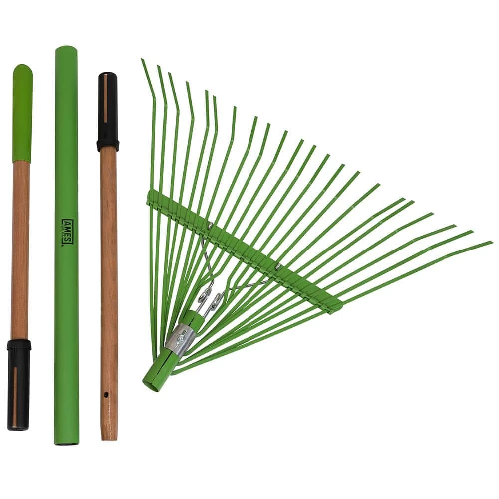 A durable leaf rake is a must-have for a collection of lawn and garden tools. The Ames 22-Tine Steel Leaf Rake with Hardwood and Steel Handle is ideal for clearing leaves and debris from lawns. It features flexible steel tines for pulling out thatch for a healthier lawn. The durable tines also clear leaves, straw, hay, and grass. For a secure connection, the steel rake head is bolted to the patent-pending, strong handle. This handle combines wood and steel with an oversized comfort grip for durability and comfort. With a one-time, easy assembly, the durable handle will stay strong to not twist or loosen. This 22-Tine Leaf Rake by Ames offers long-lasting quality and efficiency.