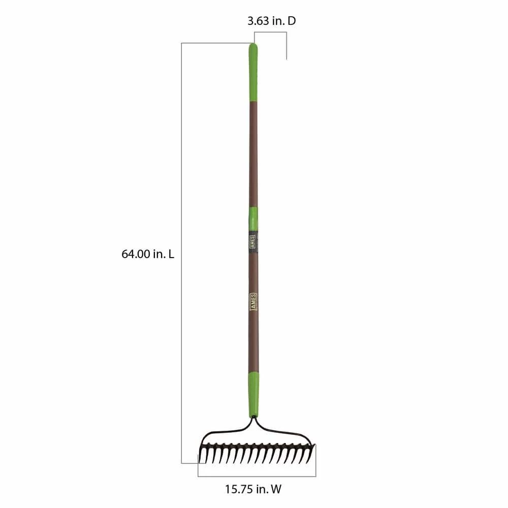 The Ames Double Play Bow Rake is designed to loosen and level soil. The 16 steel tines work hard to break up hard, compacted soil or mulch and spread the material evenly. It is a handy accessory for homeowners with any landscaping and gardening requirements.