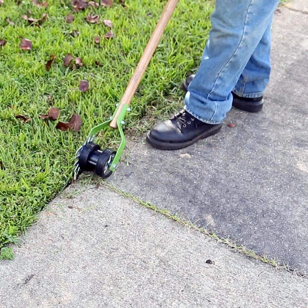 The Ames Dual-Wheeled Rotary Edger is designed to trim grass that grows over the edges of paved driveways and sidewalks. The serrated blades cut through grass and sod with ease to keep your yard neatly landscaped. The blades on this manual edger are self-sharpening for continual cutting so it won’t bog down after prolonged use.