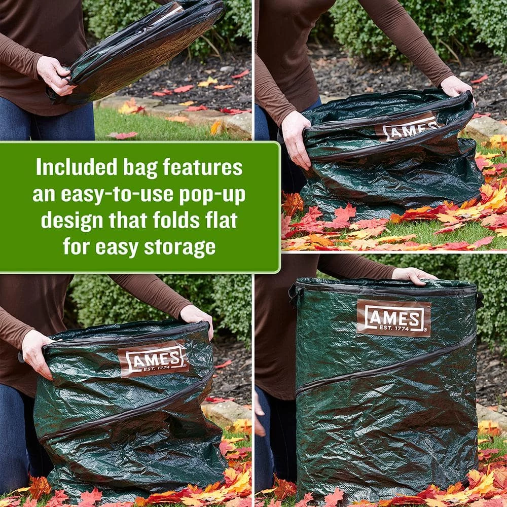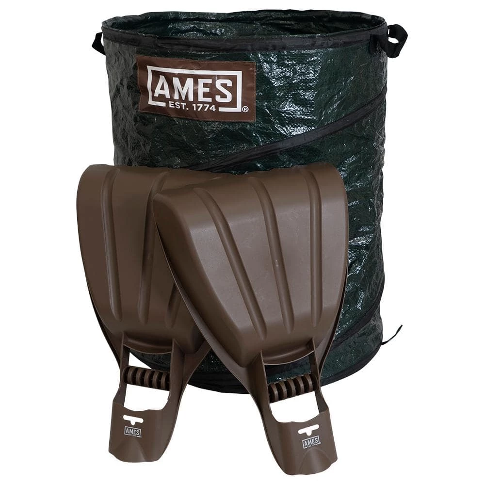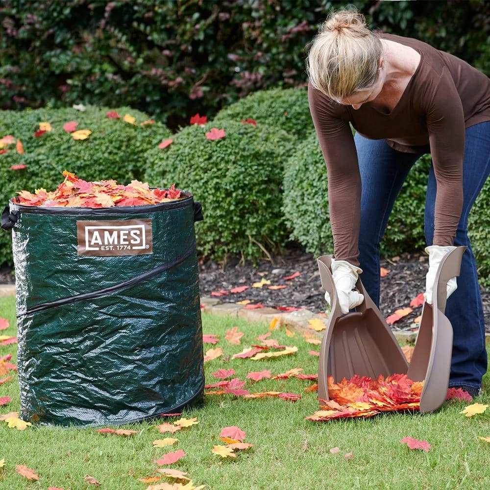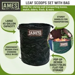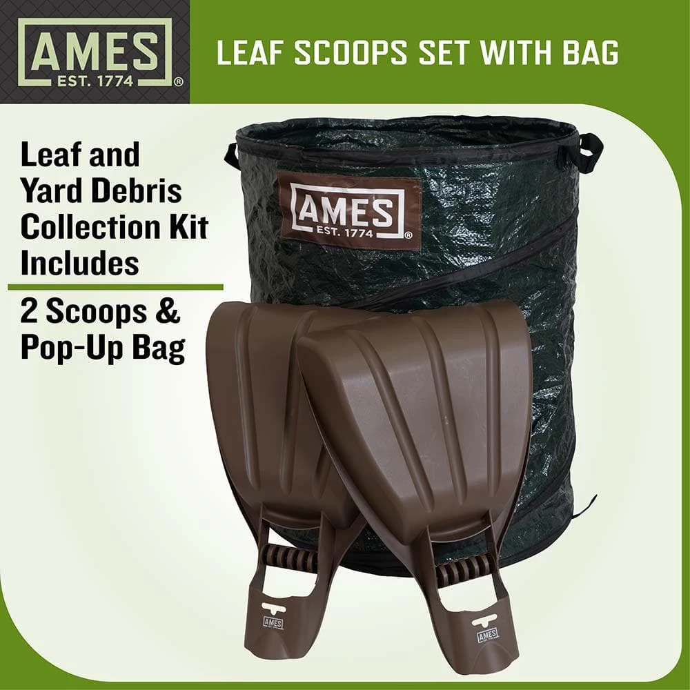 Make yard and leaf cleanup fast and easy with this Ames Leaf Collection Kit. This durable kit includes 2 leaf collector tools and 1 reusable pop-up bag. The multi-functional collector tools can scoop up large piles of leaves, mulch, debris, trash, and so much more. They also protect from thorns and weeds when collecting yard debris. The sturdy bag stays upright so that your hands can get the work done quicker. Once you have finished the job, the bag folds flat for easy storage. Use this versatile Leaf Collection Kit season after season, or use year-round to spread mulch, transport compost, collect pet waste, and more.