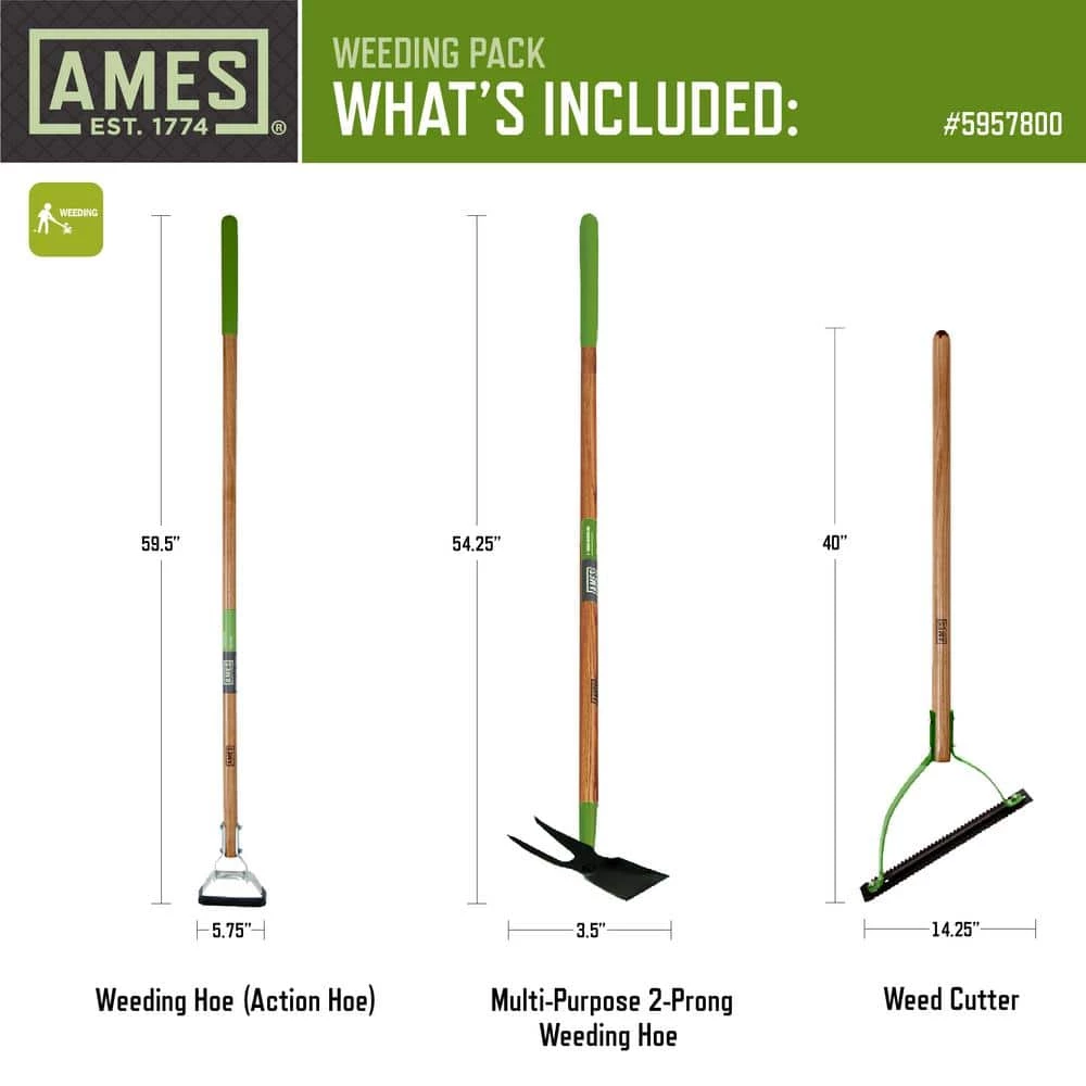 - Includes 1 wood handle weeding hoe, one 2-prong wood handle weeding hoe and 1 grass weed cutter for gardening or landscaping projects