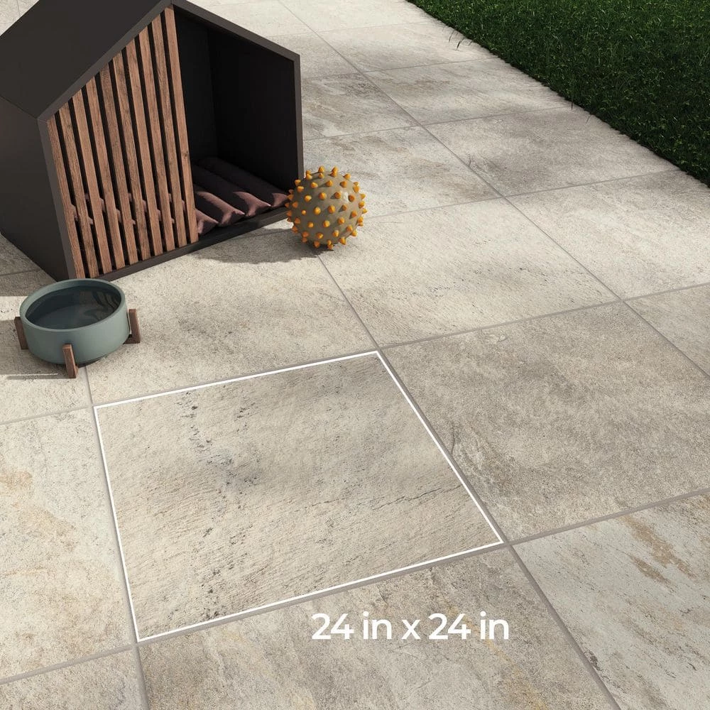 Emphasize the beauty of nature in your outdoor retreat with the untouched stone look of the Alpe Magnesium paver from Corso Italia. Inspired by rich quartzite, this paver features a sparkling texture and horizontal veins that give the material a delicate, warm color. Featuring a high mechanical resistance, this 24 in. x 24 in. x 0.75 in. paver is twice as thick as conventional porcelain. Alpe Magnesium can be used in residential or commercial outdoor venues, and is suitable for dry installation on grass, sand and gravel.