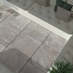 Unsure about the look? Order an affordable paver sample today so you can see the paver up close prior to placing your full order. ๐ SAMPLES ARE INTENDED FOR COLOR AND TEXTURE REFERENCE ONLY, NOT FOR INSTALLATION. Alpe Silver reproduces the details of quartzite stones, rich in veining and chromatic changes, in a resistant, functional and safe solution for outdoor use. Featuring a high mechanical resistance, this paver is twice as thick as conventional porcelain. Alpe Silver is fit for public and private outdoor venues, and is suitable for dry installation on grass, sand and gravel.