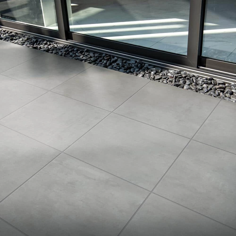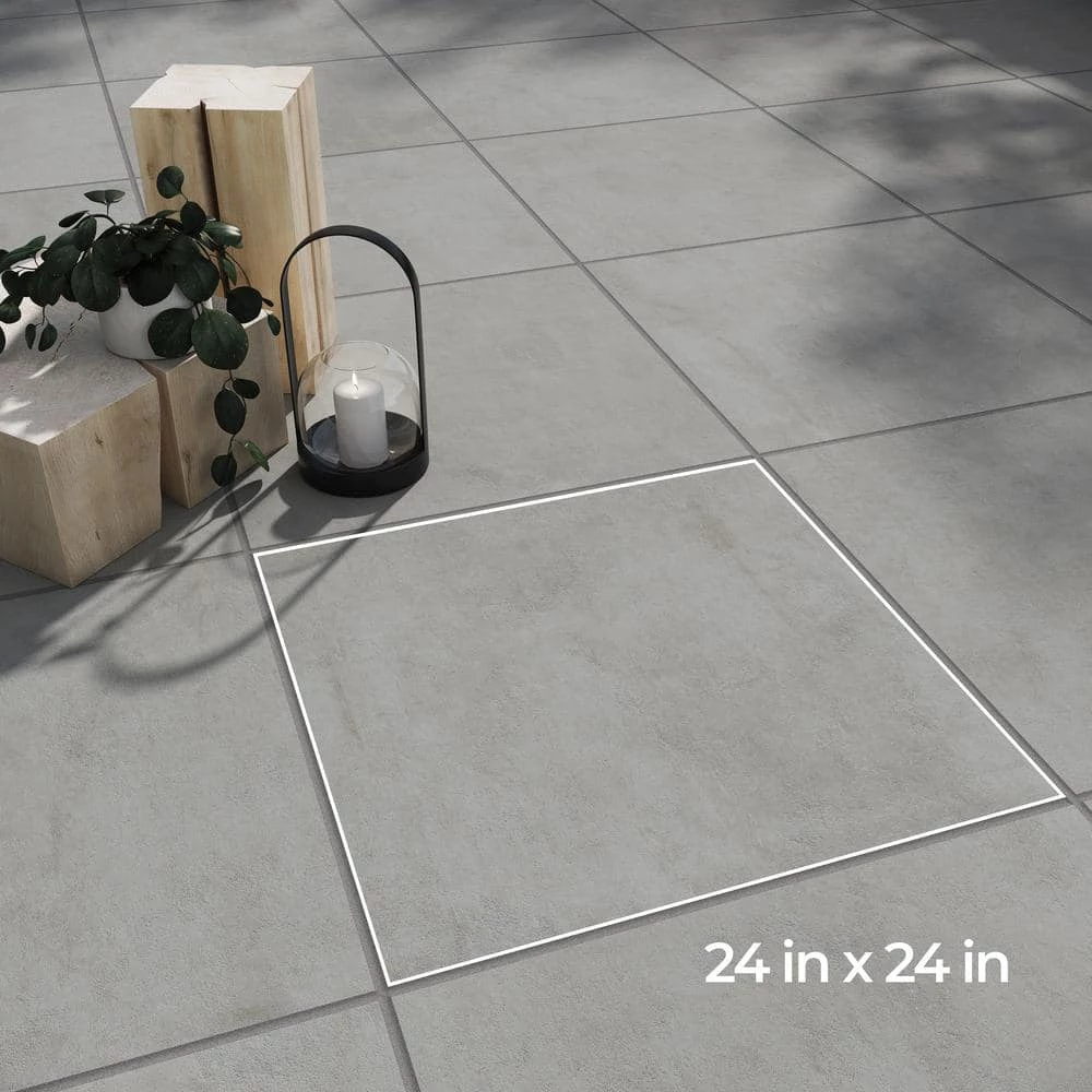 Your outdoor retreat will take on an industrial chic vibe with the troweled concrete look of our Urban Concrete paver. In a design that stands out for its forceful nature, warm tones contrast with the cooler hues typical of concrete. Featuring a high mechanical resistance, this 24 in. x 24 in. x 0.75 in. paver is twice as thick as conventional porcelain. Urban Gray is fit for public and private outdoor venues, and is suitable for dry installation on grass, sand and gravel.