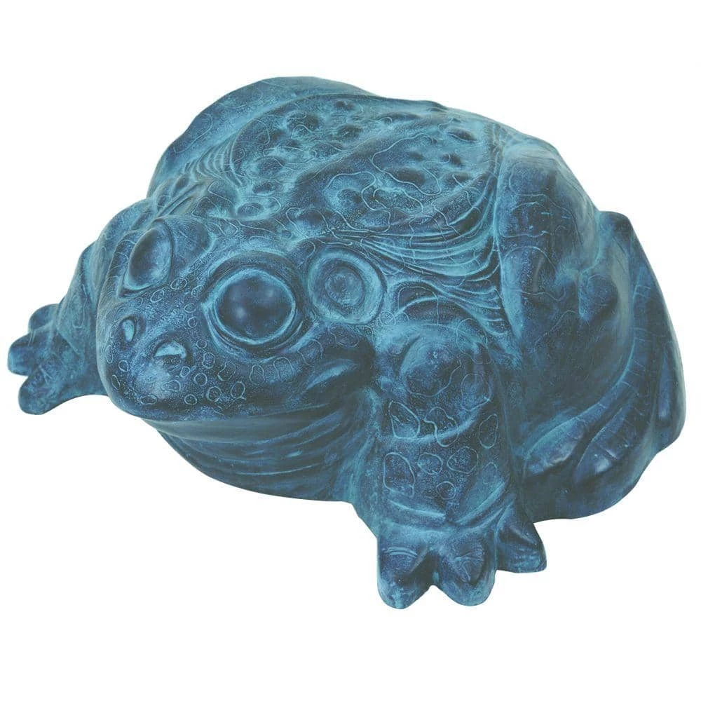 Doubling as a creative statue. the Emsco Group Outdoor 12-1/2 in. Frog Decorative Garden Storage Container also offers storage for up to 100 ft. of hose, pots and gardening materials or children’s toys. A patina finish gives the resin statue the appearance of aged bronze.