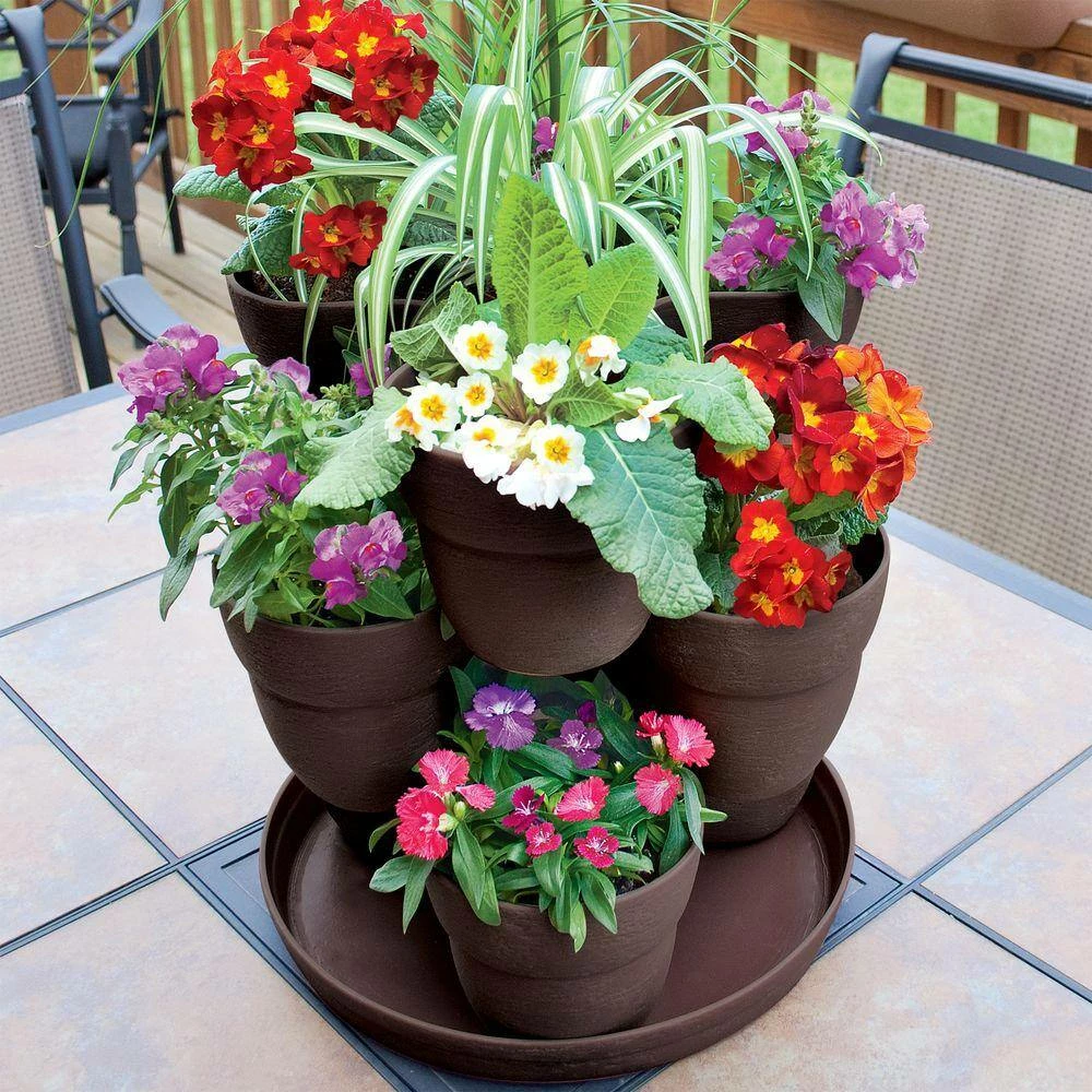 Any plant lover will be thrilled with the Emsco Group Outdoor Flower Tower. These 3-tier, resin flower pots stack on top of each other, making a tower of cascading flowers or herbs. Not only is it a beautiful accent to any home or yard, this planter is an easy solution for those with little garden space. Attractive earth brown finish.