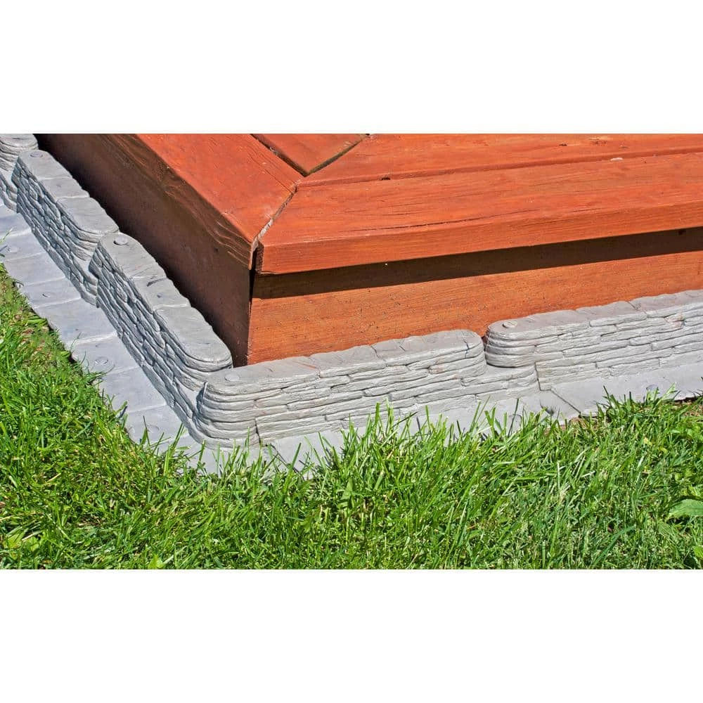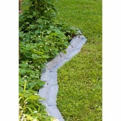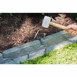 The Emsco Group Outdoor TrimFree Bedrocks Edging creates a beautiful edge border to enhance your garden or lawn with a look of stacked slate, great for adding definition to any border around your flower beds, mailbox area, playground, etc. The exclusive TrimFree feature forms a barrier to prohibit grass or vegetation growth so no edging is needed after mowing; just mow grass to the edge and no weed whacking is necessary. It adjusts to a 180° angle at the joints to easily form right angles, curves and bends. The edging is easy to install; simply tap in the extra-long spikes to each piece (10 included) with a hammer or mallet. Each pack contains enough edging to cover approximately 20 ft. with all necessary endcaps and spikes included.