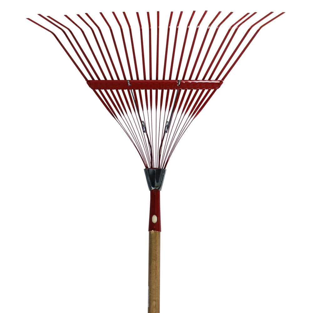 The Emso Cavex 22.5 in. 22-tine metal leaf rake has solid steel tines and a 48 in. hardwood handle. The strong steel tines make this the ideal rake for cleaning up mown grass, leaves and lawn debris. This durable rake features a bolted design for a secure head-to-handle connection. The red color of the tough metal head also makes the rake easy to spot when it is lying in a leaf-covered yard.