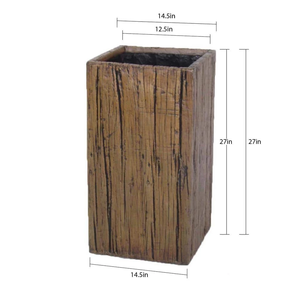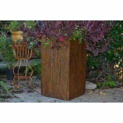 This exclusive tall squared planter reminds you of weathered driftwood. A great planter used separately or as a pair on your patio or pool deck or highlighting the entrance to your home or vacation cabin. The planter is made using a strong construction of minerals and does not break easily. It is lightweight, watertight and can be left outdoors in winter. Drill a hole in bottom of planter for drainage for outdoor usage.