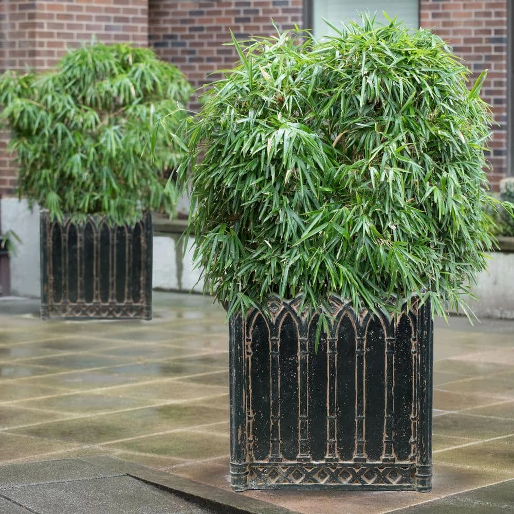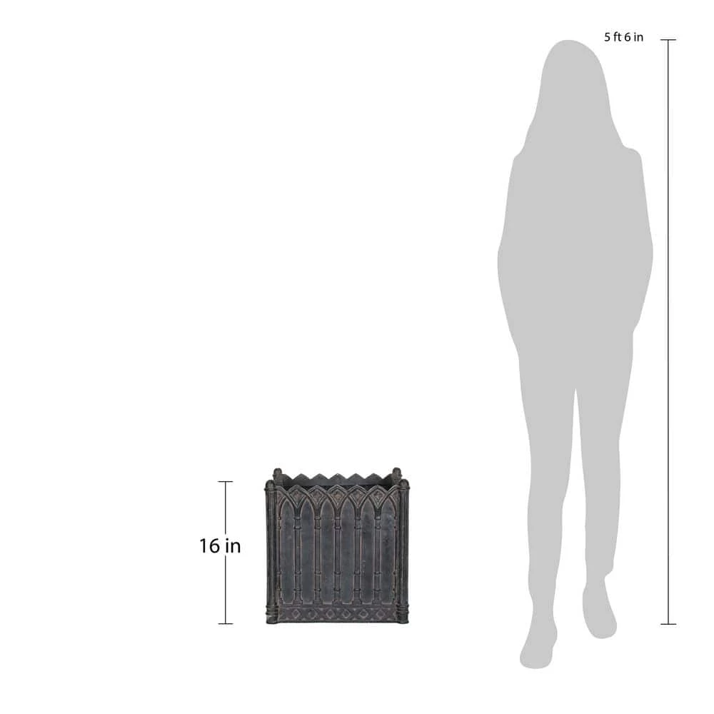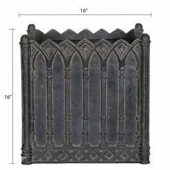 This exclusive, square planter with intricate European inspired column detail, is perfect for patio, poolside and even indoors. Constructed of a blend of natural stone, resin and fiberglass, the planter is lightweight, watertight and weather resistant. The 85% crushed natural outer stone surface ages to a beautiful time work, old world hue as it weathers.