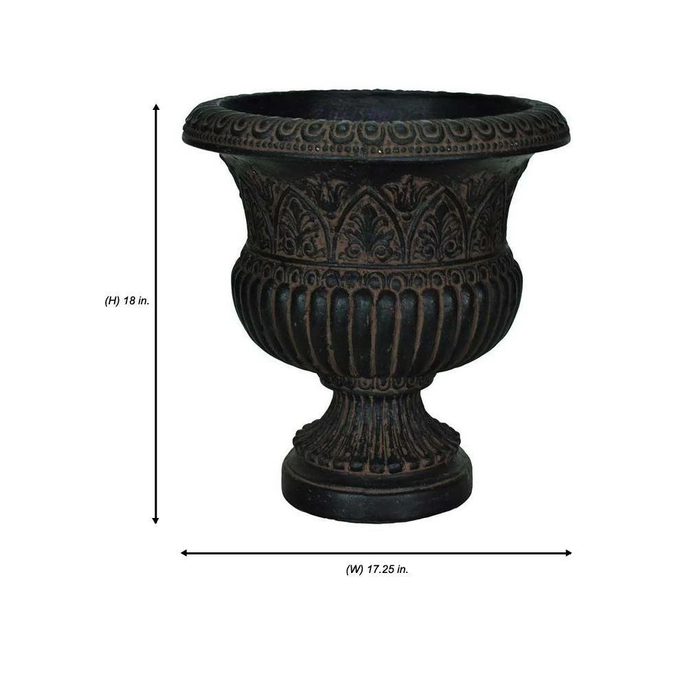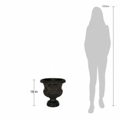 Enhance your indoor or outdoor space with this faux-iron urn. This lightweight, weather-resistant planter includes drainage holes to stop overwatering. Handmade in a mold from the artisan-carved original, it’s designed with a blend of natural stone and minerals for a vintage look.