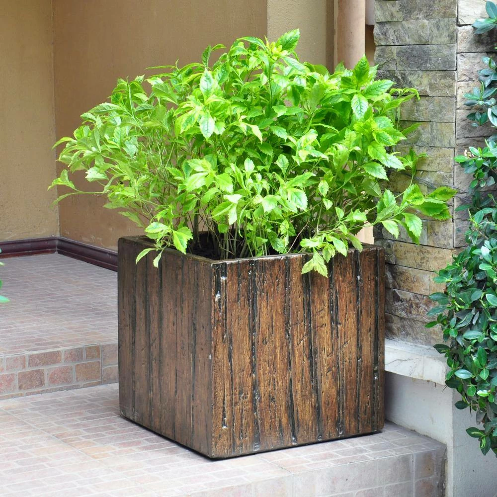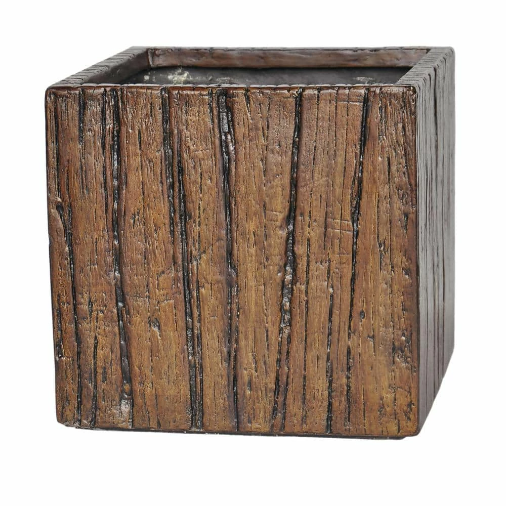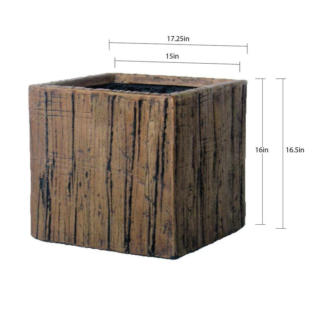 This exclusive square planter reminds you of weathered driftwood. A great planter used separately or as a pair on your patio or pool deck or highlighting the entrance to your home or vacation cabin. The planter is made using a strong construction of minerals and does not break easily. It is lightweight, watertight and can be left outdoors in winter. Drill a hole in bottom of planter for drainage for outdoor usage.