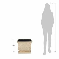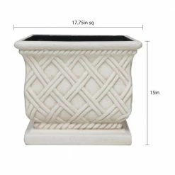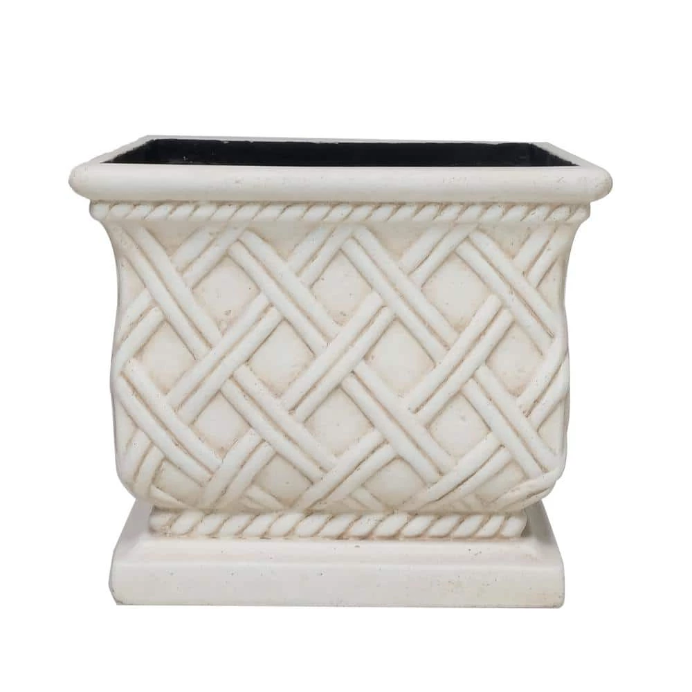 This exclusive, handcrafted square lattice planter is reminiscent of a classic English garden and is the perfect accent for the entry to your home or garden. Constructed of a blend of natural stone, resin and fiberglass, the planter is lightweight, weather resistant and easy to move. The 45% crushed natural outer stone surface ages to a beautiful time worn hue as it weathers.