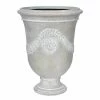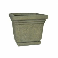 This exclusive, stately square planter, reminiscent of an English estate garden is perfect for trees or large plants. Available in 3 sizes, it is constructed of a blend of natural stone, resin and fiberglass, the planter is lightweight, watertight and weather resistant. The 85% crushed natural outer stone surface ages to a beautiful time worn, old world hue as it weathers.