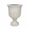 This exclusive, English inspired urn with fluted body is perfect for patio, poolside and even indoors. Constructed of a blend of natural stone, resin and fiberglass, the planter is lightweight, watertight, weather resistant and easy to assemble. The 85% crushed natural outer stone surface ages to a beautiful, time worn, old world hue as it weathers.