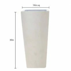 This exclusive square tapered planter is simple in design but substantial in presence and is perfect for an entryway, patio or poolside. Use alone or as a pair for a strong statement. The planter is a composite made using a strong construction of minerals and does not break easily. It can be used indoors or outdoors and can be left outdoors in winter, withstanding frost up to 0°F.