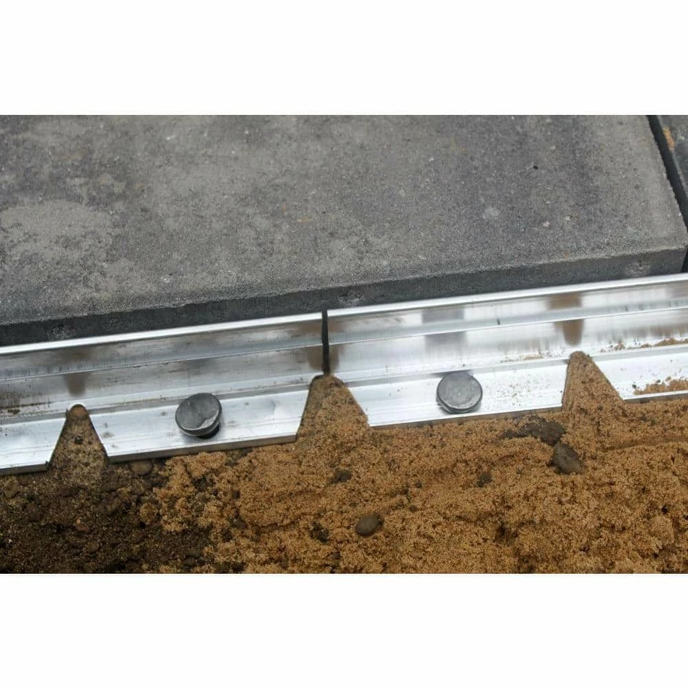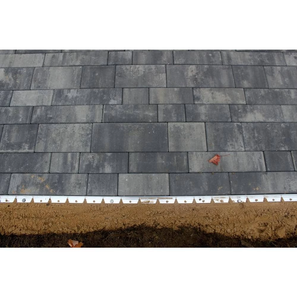 Dimex Aluminum Paver Edging is a heavy duty professional hardscape edging product made from construction grade aluminum. Engineered to provide lasting support, Dimex aluminum paver edging should be used to secure concrete or brick pavers in patio, walkway or driveway applications. Ready-to-use for straight lines and flexible enough to follow the most intricated curved patterns without cutting – even at 90° angles. Includes (8) 6 ft. sections of edging and (24) 10 in. steel spiral anchoring spikes.