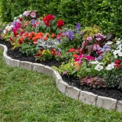 - Rustic stone design complements any flower garden