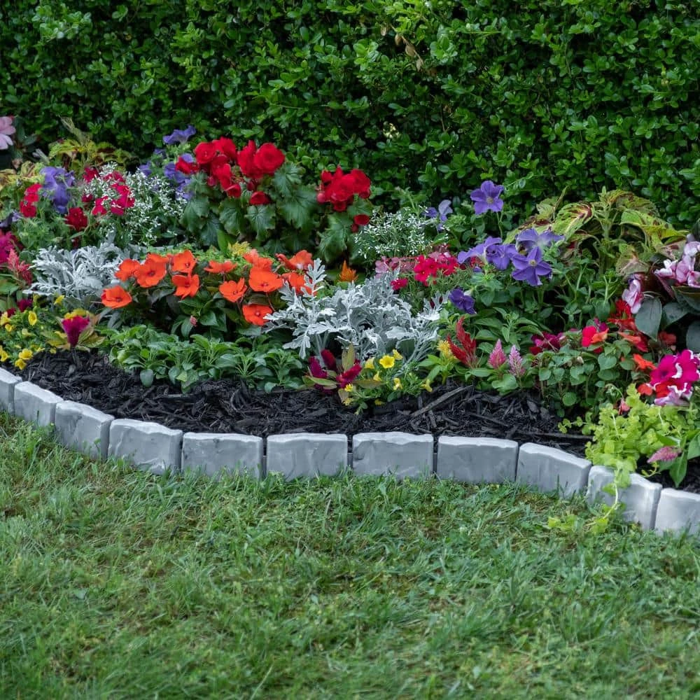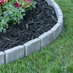 The ProFlex Decorative Faux Stone No-Dig Landscape Edging Kit adds a rustic finish to any gardening or landscaping project. The dark gray ornamental edging is flexible enough to use as a tree ring and the patented No-Dig L-shaped design eliminates damage from digging into tree and plant roots. An overlapping post system creates seamless borders, eliminating the need for connector pieces. Unlike other decorative fence-style edging products, the 2.7 inch high edging has a built-in retaining section designed to hold back bedding materials and can be installed on top of landscape fabric to prevent weed growth. Simply clear the area of debris and align the edging to the shape of the bed. Slide edging pieces together to create a continuous border around your installation area. To secure the installation, use a mallet to pound the spikes (included) into the ground through the pre-drilled hole in each end tab of the edging. The edging kit includes (72) 15-inch wide x 2.7-inch high edging pieces and (144) 8 in. anchoring spikes to complete a 90-foot installation.