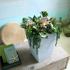 - 16 in. square resin accent planter that’s perfect for outdoor container gardening on your patio, porch deck or balcony