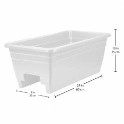 Fall in love with your flowers every time you look out your deck with The HC Companies Heavy-Duty 24 in. W Akro Deck Rail Box Planter White. (4-Pack). A durable planter that will be lasting you for seasons to come, with a modern white slick look that will go with all your decor. This planter will fit 2 sizes of deck rails (L x W): 4 in. L x 2 in. W and 6 in. x 2 in., great for any type of wooden, vinyl, or metal railings. With a liquid capacity of 6.60 Gal. and easily removable drain plugs, drainage will no longer be an issue while keeping your deck water free. Give your deck the attention it deserves with The HC Companies Heavy-Duty 24 in. W Akro Deck Rail Box Planter White (4-Pack).