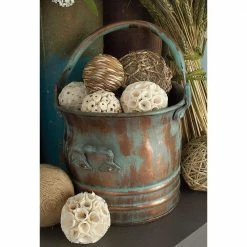 This bucket style planter set can become the most appealing element of your garden, providing great efficient usage. These planters are made up of metal featuring an irregular pattern along with a tinge of green finish on the smooth surface. Each planter in this set of 3 is equipped with 1 handle making them easy to carry. These planters are available in 3 varied sizes that can also be used as a decorative piece. Material is Iron for this item not copper.