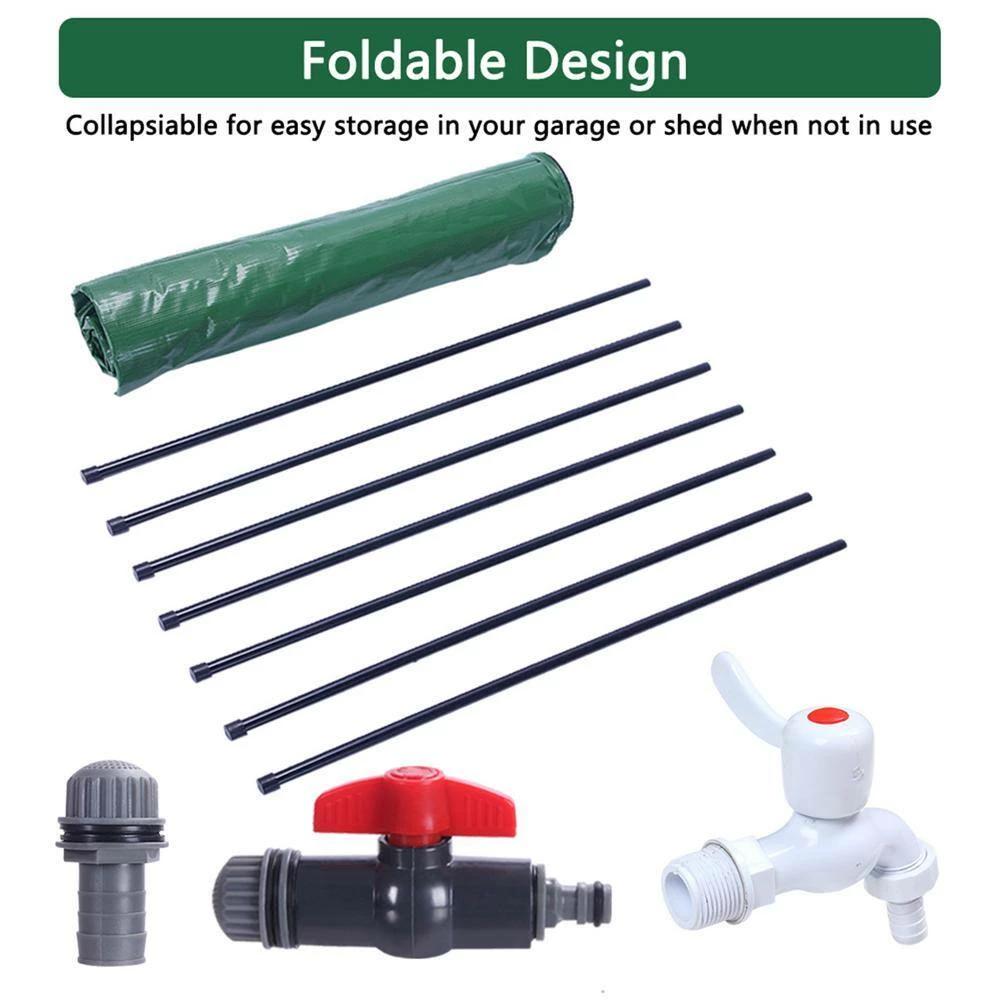 - Package includes: 1 x 500D PVC mesh cloth plus 7 x PVC support rods plus 1 x ABS drainage valves plus 1 x 3/4 faucet plus 1 x white faucet