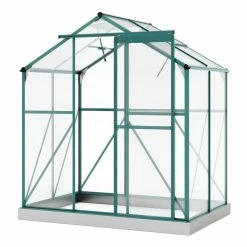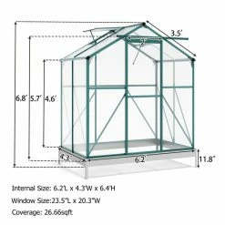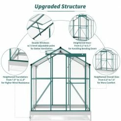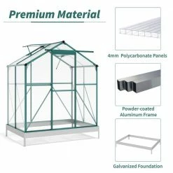 - Garden Greenhouse to a big fan of gardening, this hobby greenhouse will help the growth of your plants absolutely, built of power-coated aluminum and 4 mm double transparent polycarbonate panels with removable protective films, it can keep weather resistant and light-thru as well as heat-preserved maximum which will protect your flowers or herbs from raining or snowing