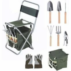 Our Bosonshop 9-Piece Garden Tools Set can be a folding garden seat with a Backrest to relax when you are tired. An ergonomic natural wood handle allows you to use them comfortably. The gardening set included 1 x Tote bag, 1 x Garden Seat,1 x Gloves,1 x Trowel, 1 x Transplanter, 1 x Pruner,1 x Handle Rack,1 x Weeder,1 X Handle Shovel. Great to hold different kinds of gardening.