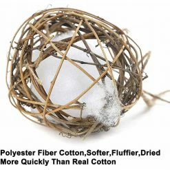 - Quick-drying material – the globe nesters are well built to hold the bird nest material, hand crafted by rattan, hemp rope and filled by polyester fiber cotton which is softer, fluffier than real cotton, dried quickly after wind and rain, provide pet bird or wild bird just what it needs to create safe warm nest for its eggs faster and easier