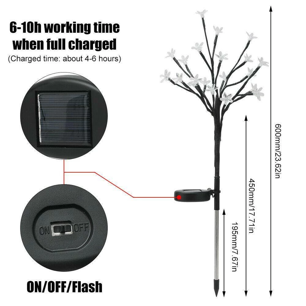 This Solar Light is the perfect addition to any garden! It’s made of sturdy wire and PS plastic, with colorful transparent flowers dotted around the trees, and looks great when lit up at night. Powered by solar energy and able to turn on and off automatically, this lamp is perfect for decorating your garden. Don’t hesitate.